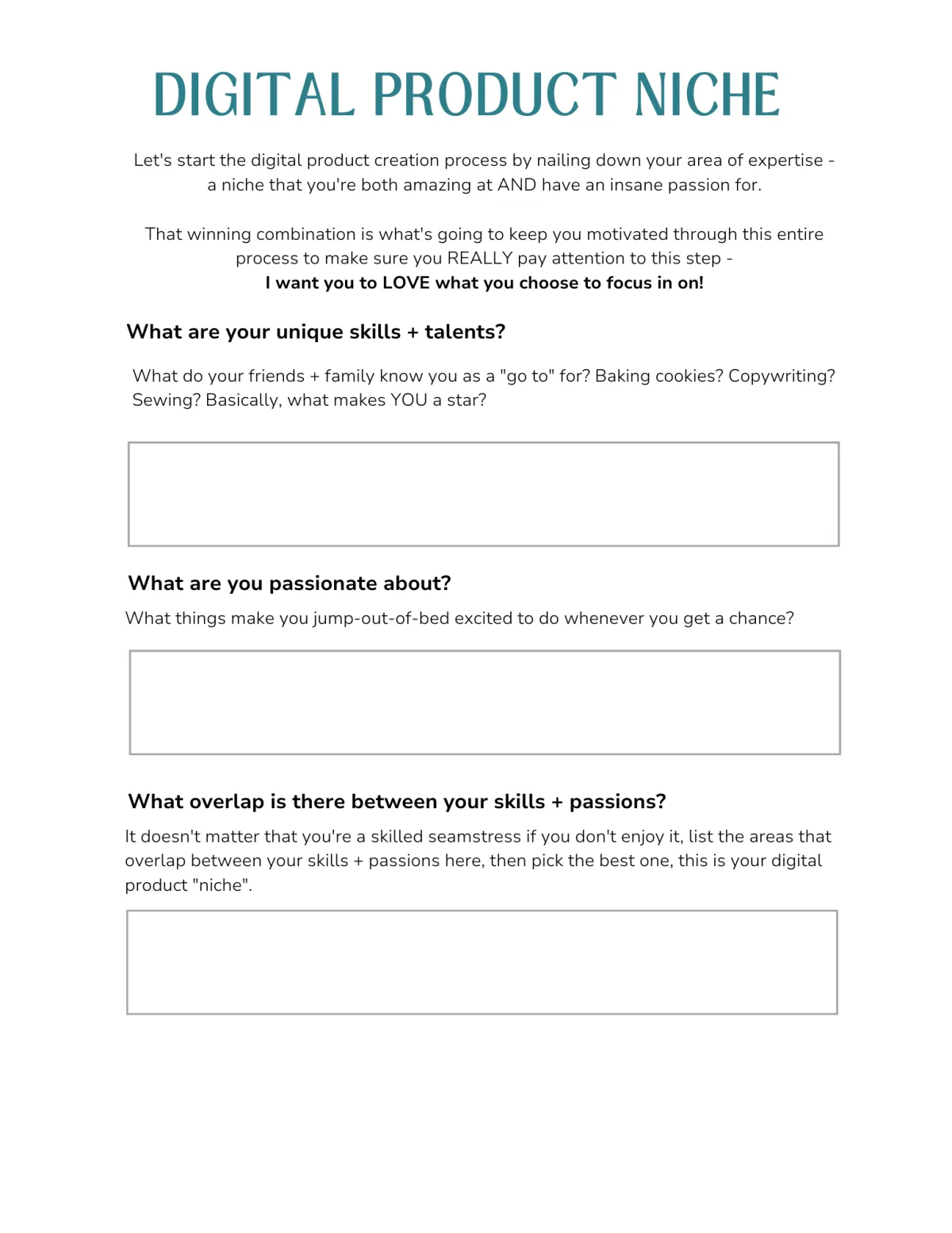 For women entrepreneurs struggling to turn their ideas into offers they can sell to their ideal clients, the Digital Product Workbook is your perfect solution.