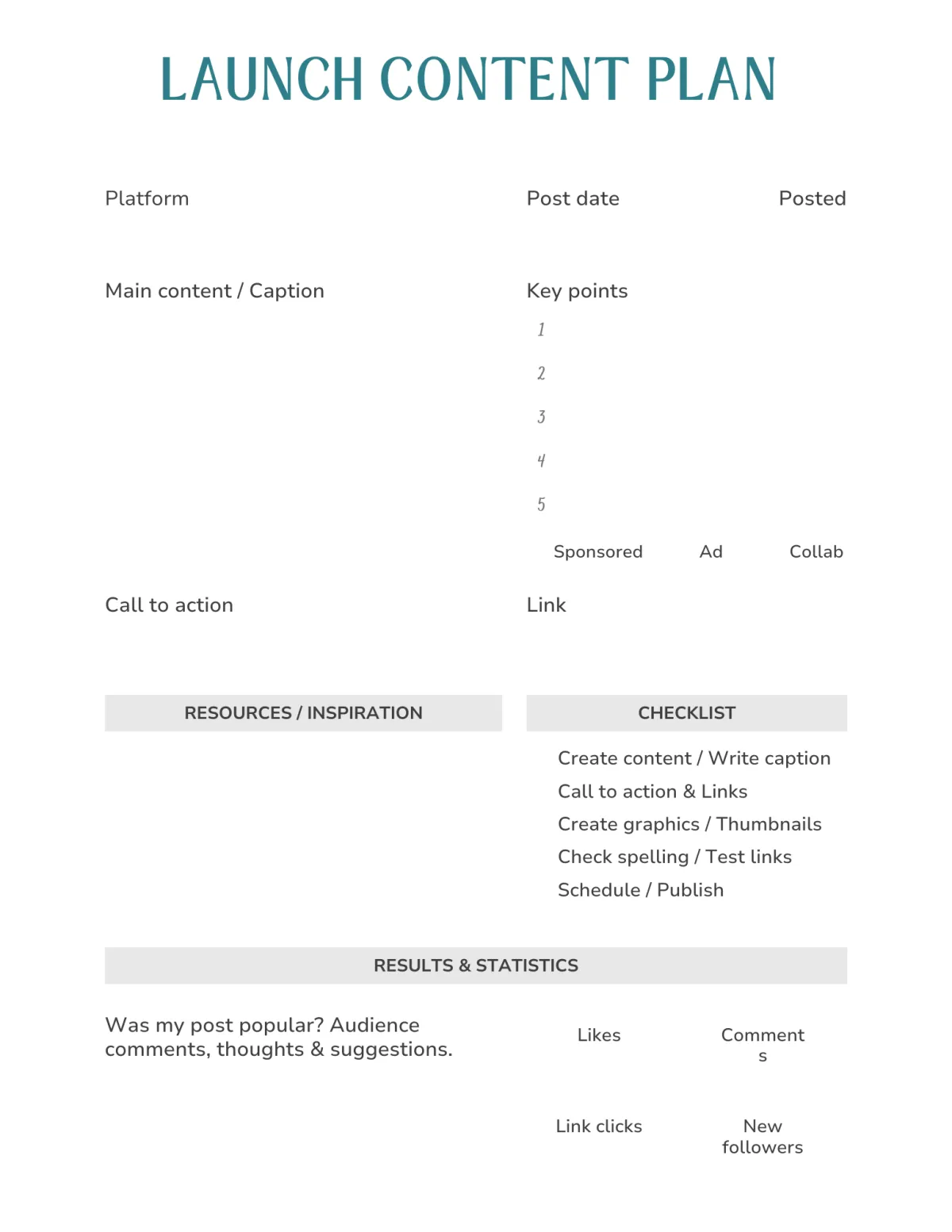 This workbook helps you organize your thoughts and provides step-by-step guidance to transform your ideas into actionable tasks, creating a successful product launch plan.